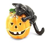 Get Your Low Price and Cheap Priced on Objet D'Art Release #171 "Cute N' Creepy" Halloween Black Cat on Jack O Lantern Handmade Jeweled Metal & Enamel Trinket Box
